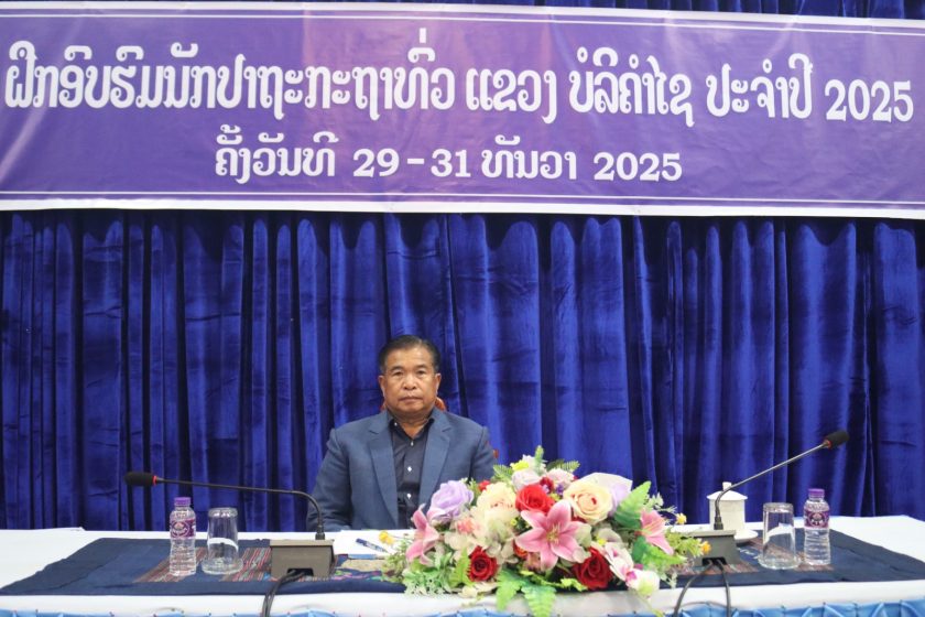 ເພື່ອຍົກລະດັບຄວາມຮູ້-ຄວາມສາມາດ ແລະ ເຕັກນິກ ໃຫ້ແກ່ພະນັກງານຫຼັກແຫຼ່ງທີ່ເຮັດວຽກງານໂຄສະນາ-ປາຖະກະຖາ ພາຍໃນແຂວງບໍລິຄຳໄຊ, ກົມໂຄສະນາ ຄະນະໂຄສະນາອົບຮົມສູນກາງພັກ ຮ່ວມກັບ ຄະນະໂຄສະນາອົບຮົມ ແຂວງບໍລິຄໍາໄຊ ໄດ້ຈັດຊຸດຝຶກອົບຮົມວຽກງານໂຄສະ ນາ-ປາຖະກະຖາ ຂຶ້ນ ໃນຕອນເຊົ້າວັນທີ 29 ທັນວາ 2025 ທີ່ຫ້ອງປະຊຸມ ຂອງຫ້ອງວ່າການ ແຂວງ ບໍລິຄຳໄຊ ໂດຍການເຂົ້າຮ່ວມເປັນປະ ທານ ເປີດ ຂອງທ່ານ ເລືອນວິໄລ ຈັນທະລາພັນ ຮອງເລຂາພັກແຂວງ, ຜູ້ຊີ້ນຳວຽກງານການເມືອງ-ແນວຄິດ, ວຽກງານພັກ-ພະນັກງານ, ມີທ່ານ ບົວວົງ ພົມພັກດີ ຮອງຫົວໜ້າກົມໂຄສະນາ, ຄະນະໂຄສະນາອົບຮົມສູນກາງພັກ ແລະ ທ່ານ ສີຫອມ ສອນມະນີ ຄະນະພັກຮາກຖານ ຄະນະໂຄສະນາອົບຮົມແຂວງ, ມີບັນດາຫົວໜ້າ-ຮອງຫົວໜ້າພະແນກການອ້ອມຂ້າງແຂວງ, ຄະນະໂຄສະນາອົບຮົມແຂວງ ແລະ ຫົວໜ້າ-ຮອງຫົວໜ້າຫ້ອງການໂຄສະນາອົບຮົມເມືອງ 7 ເມືອງ ເຂົ້າຮ່ວມ ຈຳນວນ 43 ທ່ານ, ຍິງ 18 ທ່ານ.