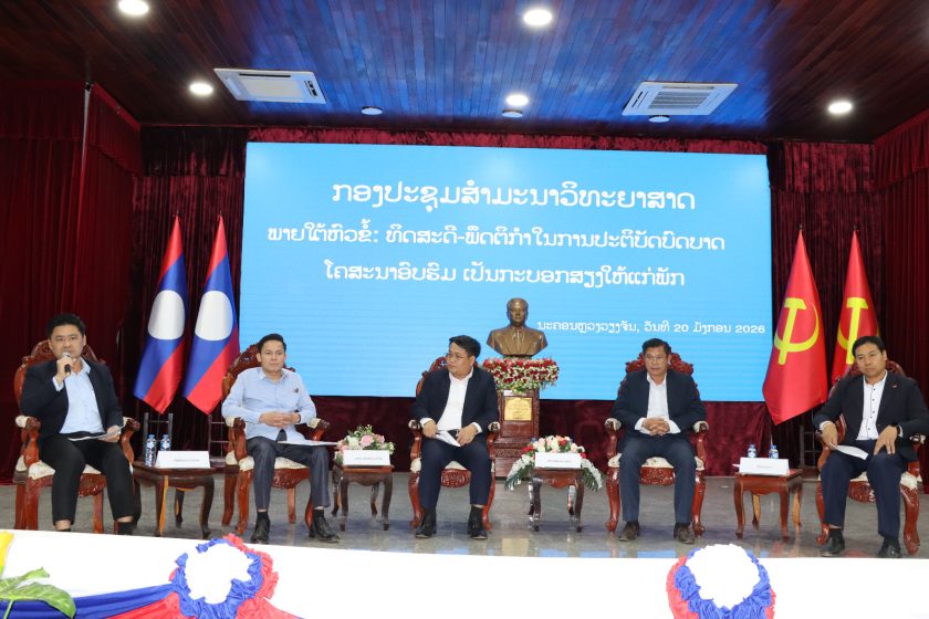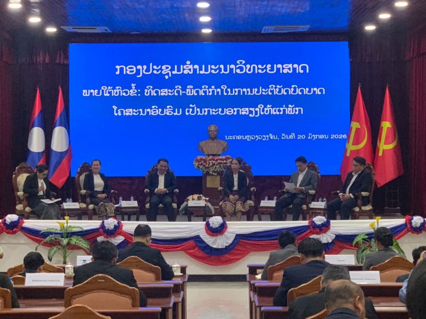 ໃນຕອນເຊົ້າວັນທີ 20 ມັງກອນ 2026, ຫ້ອງການສະພາທິດສະດີສູນກາງພັກ ຄະນະໂຄສະນາອົບຮົມສູນກາງພັກ ໄດ້ຈັດກອງປະຊຸມສຳມະນາວິທະຍາສາດ ຂຶ້ນທີ່ຫ້ອງປະຊຸມໃຫຍ່ ຄອສພ (ຫຼັກ 6) ພາຍໃຕ້ຫົວຂໍ້: “ທິດສະດີ-ພຶດຕິກຳໃນການປະຕິບັດບົດບາດໂຄສະນາອົບຮົມເປັນກະບອກສຽງໃຫ້ແກ່ພັກ”ກອງປະຊຸມໄດ້ຮັບກຽດເປັນປະທານໂດຍ ສະຫາຍ ຄໍາພັນ ເຜີຍຍະວົງ ກໍາມະການກົມການເມືອງສູນກາງພັກ, ຫົວໜ້າຄະນະໂຄສະນາອົບຮົມສູນກາງພັກ ແລະ ປະທານສະພາທິດສະດີສູນກາງພັກ;