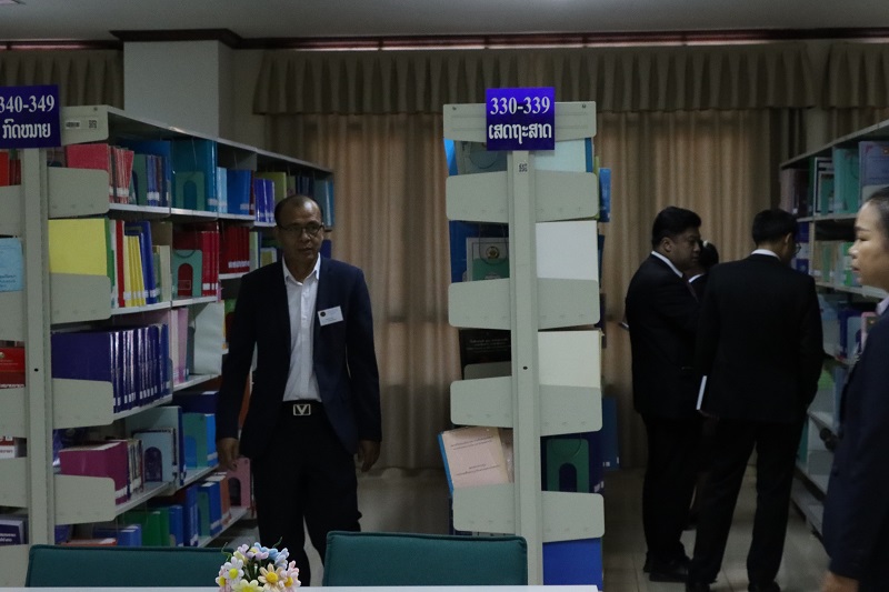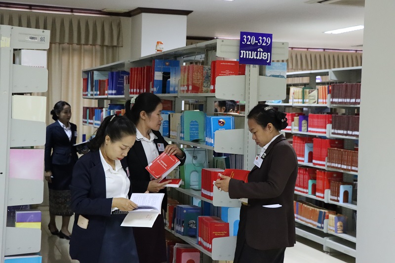 ຕອນບ່າຍຂອງວັນດຽວກັນນັ້ນ ຍັງໄດ້ໄປທັດສະນະຢູ່ທີ່ ສະຖາບັນການເມືອງ ແລະ ການປົກຄອງແຫ່ງຊາດ ໂດຍມີ ທ່ານ ປອ ສຸພາວະດີ ຫຼ້າຄຳສາຍ ຄະນະບໍລິຫານງານພັກ ສມປຊ ; ຫົວໜ້າກົມຄຸ້ມຄອງການຮຽນ-ການສອນ ໃຫ້ການຕ້ອນຮັບພ້ອມທັງຂຶ້ນນໍາສະເໜີສະພາບຫຍໍ້ກ່ຽວກັບມູນເຊື້ອປະຫວັດຄວາມເປັນມາຂອງ ສະຖາບັນການເມືອງການປົກຄອງ ເຊິ່ງມີການເຕີບໃຫຍ່ຂະຫຍາຍຕົວ ຂອງການປະຕິວັດລາວ , ສະພາບການຈັດຕັ້ງປະຕິບັດຫຼັກສູດການຮຽນ-ການສອນ ໃນໄລ ຍະຜ່ານມາ ແລະ ທິດທາງແຜນການພັດທະນາຫຼັກສູດການຮຽນການສອນໃນຕໍ່ໜ້າ ຫຼັງຈາກນັ້ນໄດ້ຢ້ຽມຊົມຫໍສະໝຸດຂອງ ສມປຊ ຕື່ມອີກ.
