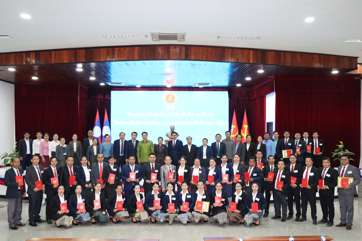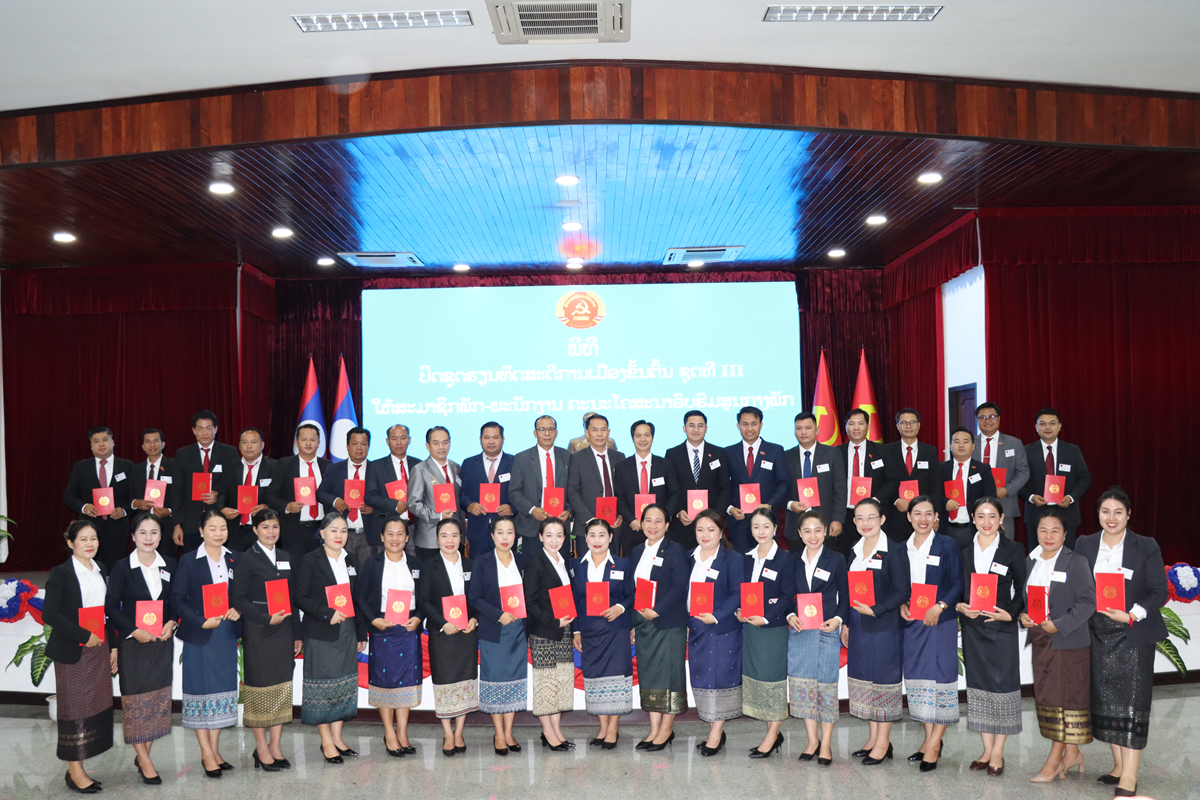 ພິທີປິດຊຸດຮຽນທິດສະດີການເມືອງຂັ້ນຕົ້ນ ຊຸດທີ III ໃຫ້ສະມາຊິກພັກ-ພະນັກງານ ຄະນະໂຄສະນາອົບຮົມສູນກາງພັກ.