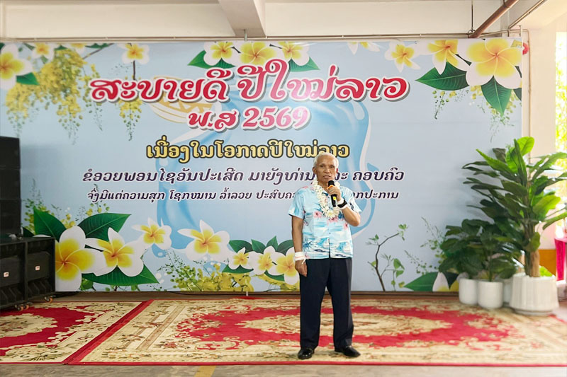 ໂອກາດນີ້, ທ່ານ ຄໍາພັນ ເຜີຍຍະວົງ ໄດ້ເປັນກຽດຂຶ້ນກ່າວອວຍພອນປີໃໝ່ລາວ ໃຫ້ແກ່ບັນດາຄະນະພັກ-ຄະນະນຳ, ອະດີດການນຳ, ພະນັກງານອາວຸໂສບຳນານ, ພ້ອມດ້ວຍພະນັກງານພາຍໃນ ຄອສພ ແລະ ແຂກຖືກເຊີນທີ່ເຂົ້່າຮ່ວມ ໃຫ້ມີສຸຂະພາບເຂັ້ມແຂງ, ມີພະລະນາໄມສົມບູນ, ມີຜົນສໍາເລັດອັນໃໝ່ໃຫຍ່ຫຼວງກວ່າເກົ່າໃນໜ້າທີ່ວຽກງານ, ມີຄວາມຜາສຸກໃນຊີວິດ ຂອງຕົນ ແລະ ຄອບຄົວ ທຸກປະການໃນຕະຫລອດປີ ພສ 2569 ນີ້. ການຈັດງານໃນຄັ້ງນີ້, ເປັນການຮັກສາຮີດຄອງປະເພນີ ແລະ ຮັກສາມູນເຊື້ອ, ວັດທະນະທຳອັນດີງາມຂອງຊາດລາວ ທີ່ເຄີຍປະຕິບັດກັນມາແຕ່ບູຮານນະການ ເປັນຕົ້ນແມ່ນປະຕິບັດຕາມຮີດ 12 ຄອງ 14 ອອກສູ່ສາຍຕາສາກົນ, ທັງເປັນການເສີມສ້າງ ເສີມຂະຫຍາຍມູນເຊື້ອຄວາມສາມັກຄີຮັກແພງພາຍໃນໃຫ້ແໜ້ນແຟ້ນ ແລະ ເພື່ອເປັນການຮັບໂຊກຮັບໄຊຕະຫລອດປີໃໝ່.